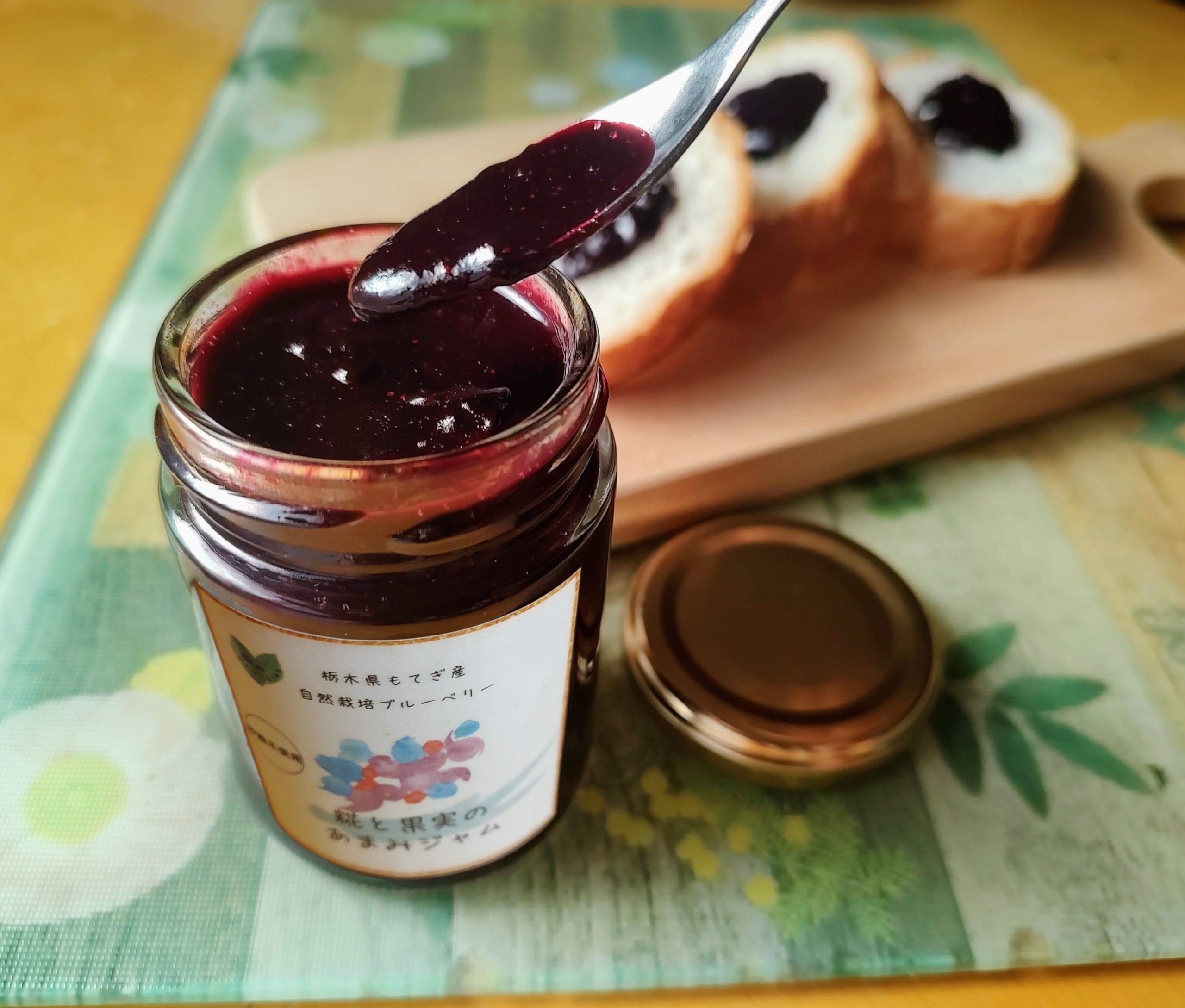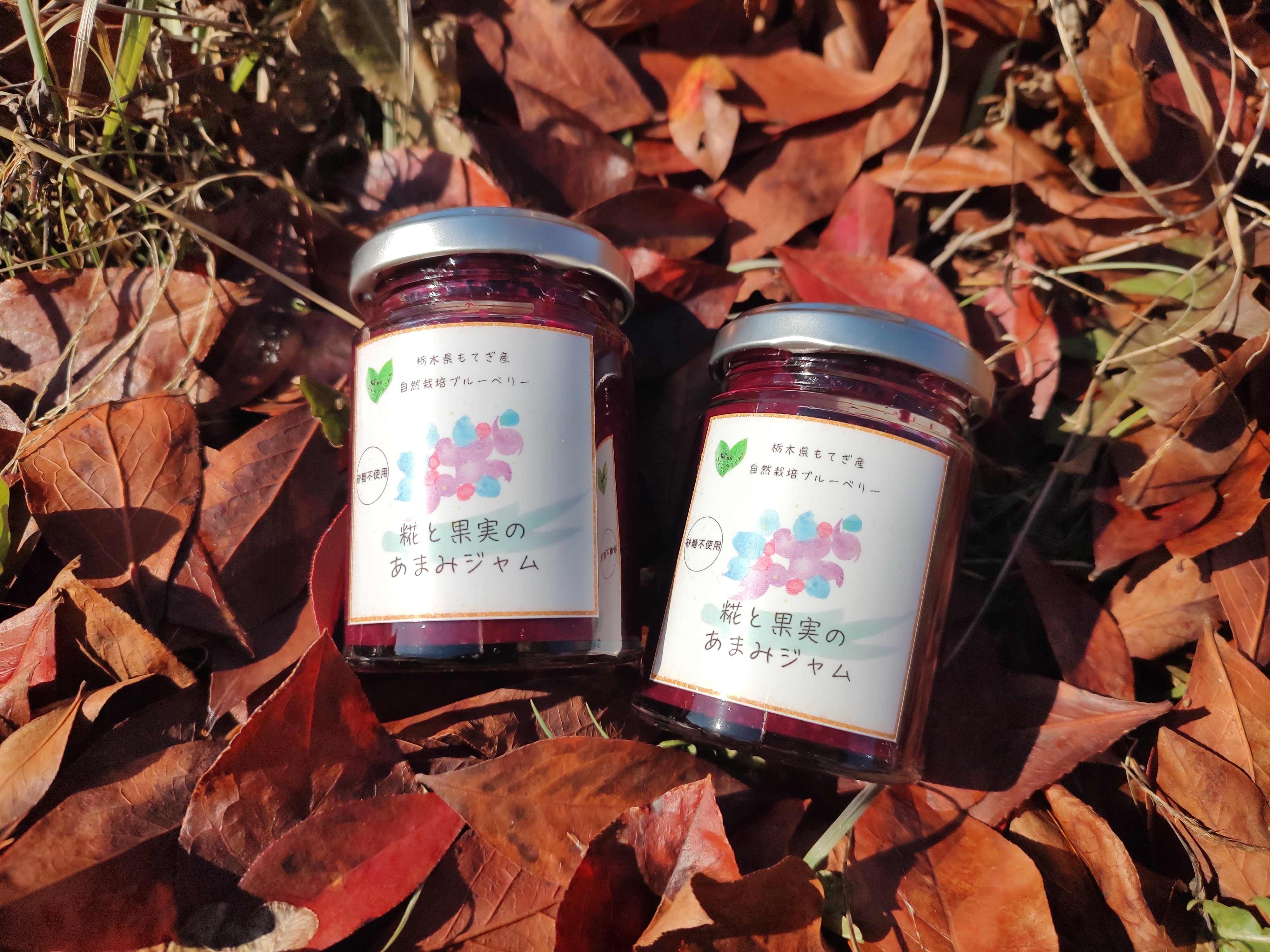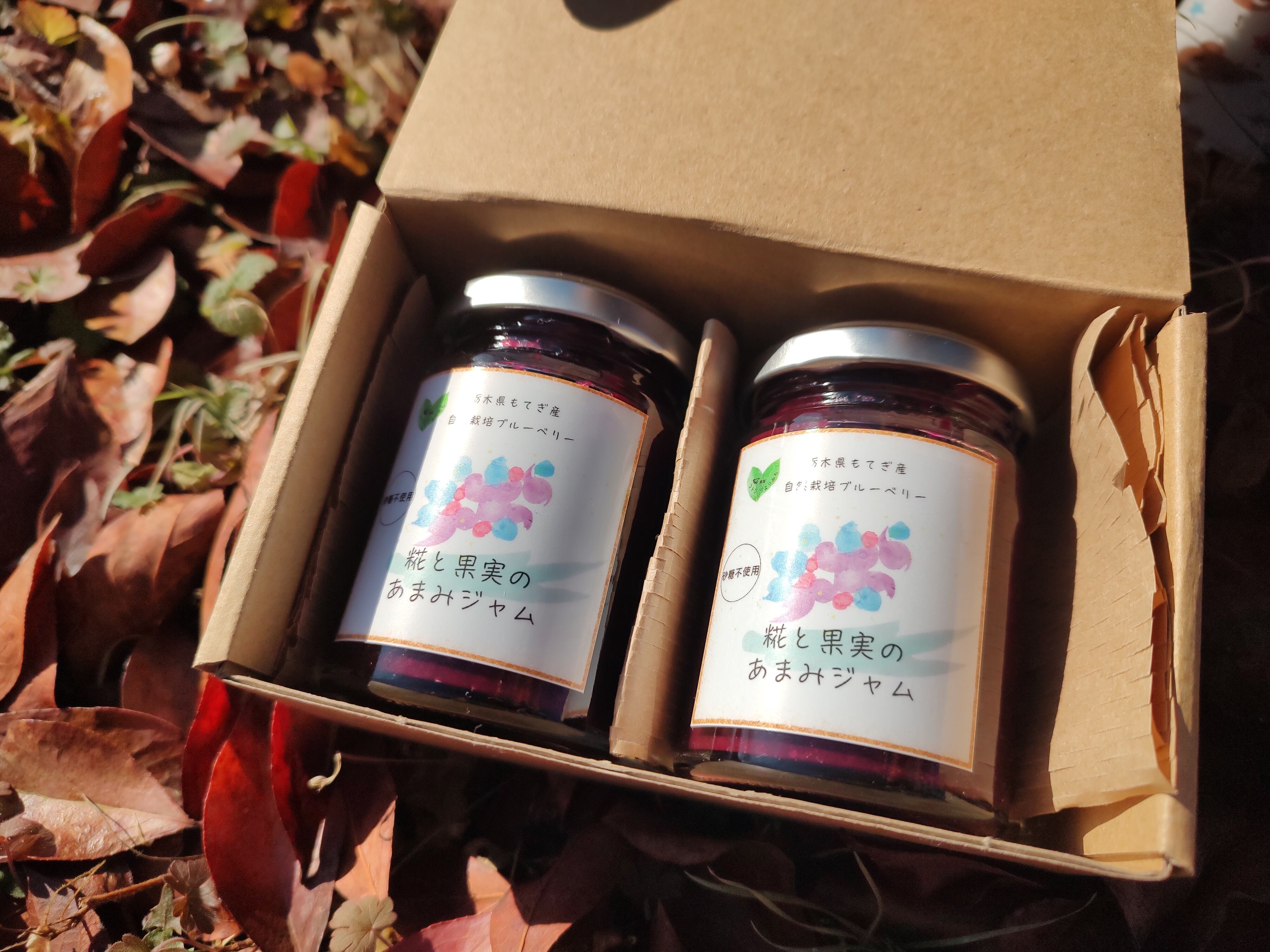 有機米の糀のみで作られた甘酒と、ブルーベリーはやや酸味のある品種を使用し超低糖度のブルーベリージャムができました。